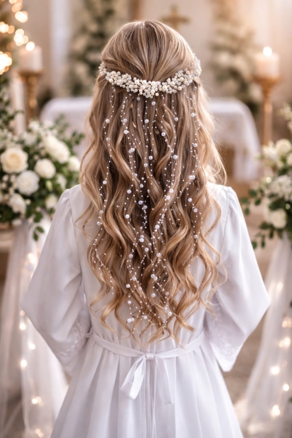 Biżuteria KOMUNIJNA, perły na włosy, spinka perły