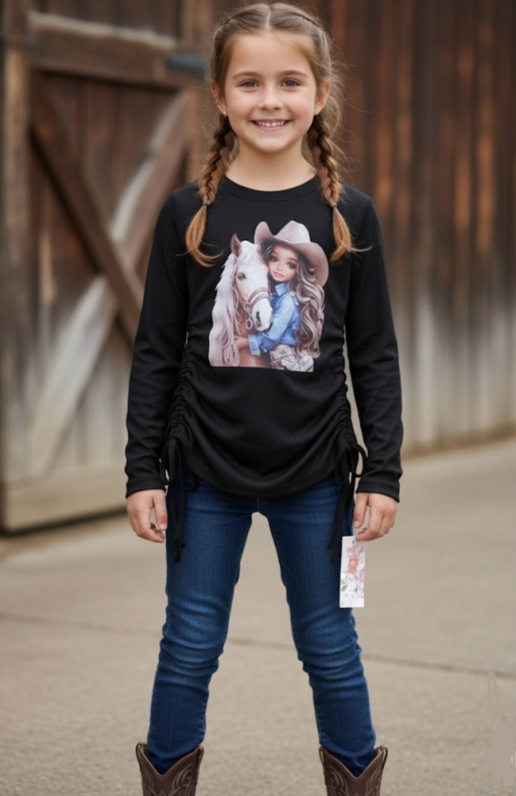 • Bluzka prążkowana z wiązaniem Koń czarna
