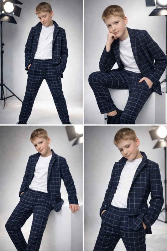 Garnitur chłopięcy w kratę ~ ciemny granat