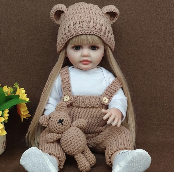 W zestawie: lalka REBORN, ubranko szydełkowane oraz czapka, butelka, smoczek magnetyczny, metryczka urodzenia lalki (do wypełnienia), buty, pampers i miś- przytulanka.