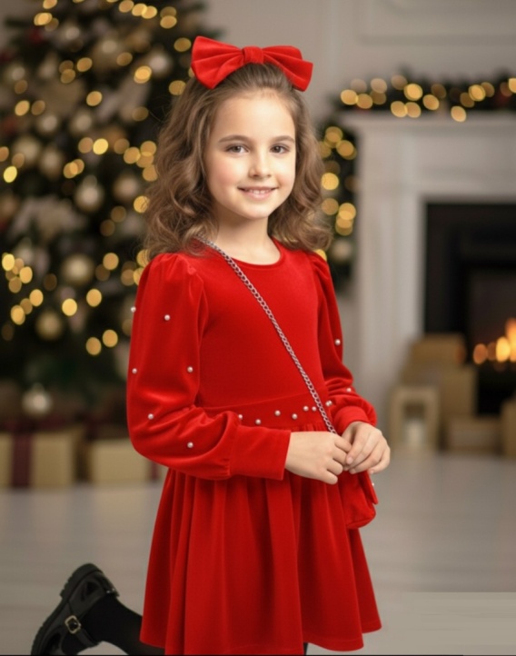 Ozdobiona perełkami w pasie oraz przy rękawach