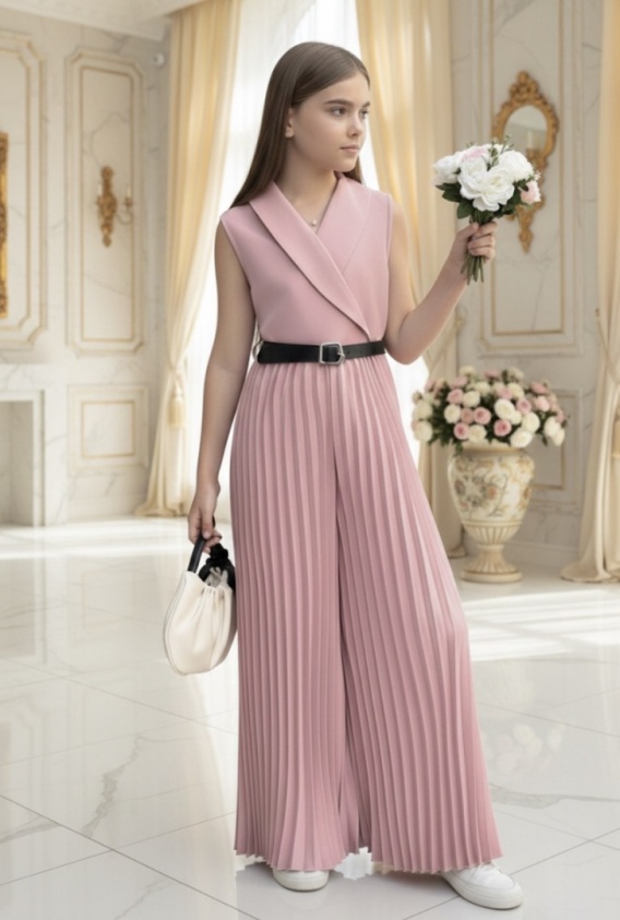 • Wizytowy kombinezon DZIEWCZĘCY plisowany KOMUNIA WESELE